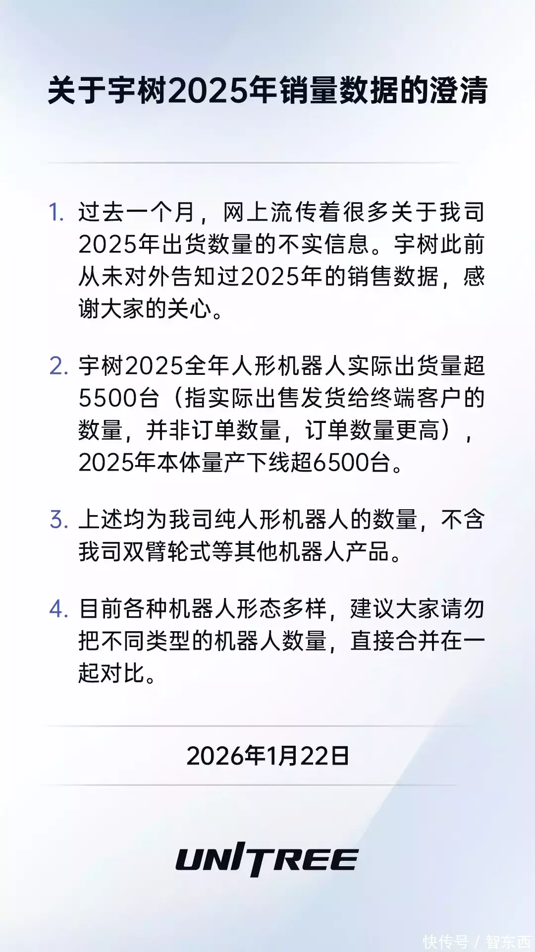 ▲宇树科技销量数据澄清公告